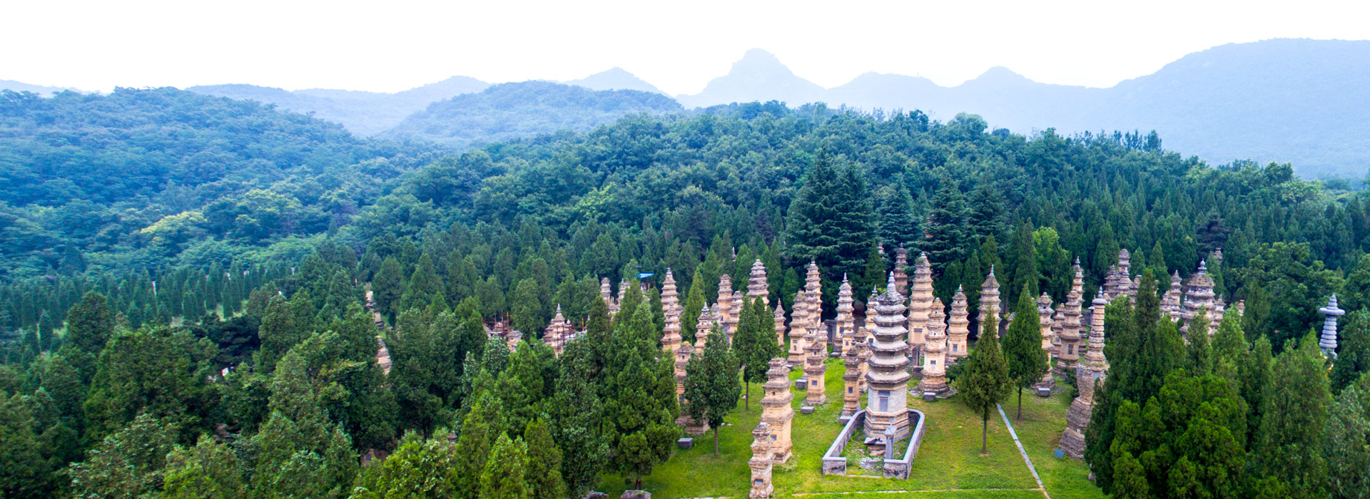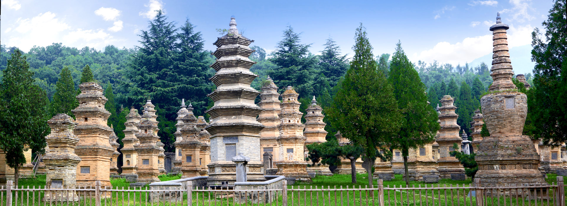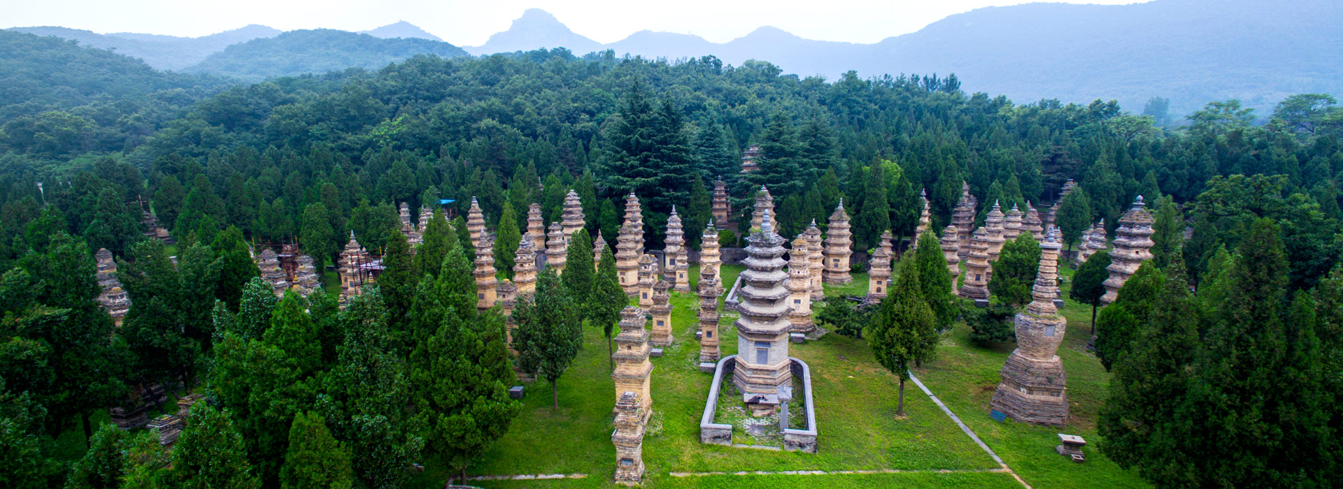 少林塔林位于少林寺西300米处,占地面积14000余平方米,是我国现存规模最大、数量最多的古塔建筑群。现存有唐、五代、宋、金、元、明、清7个朝代的砖石墓塔241座。因塔累繁多,大小参差、高低不同,粗细不一,形状各异,排列散乱,看似茂林,故被称为“塔林”,少林塔林集古代砖石建筑、雕刻、书法、绘画艺术之大成,被专家学者誉为是“古塔艺术博物馆”,于1996年11月20日被国务院公布为国家级重点文物保护单位。