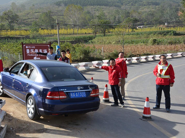 面对景区人车爆棚繁重接待任务,停车场、检票处、综合处员工通力协作,细致服务,疏导车辆,确保道路通畅。