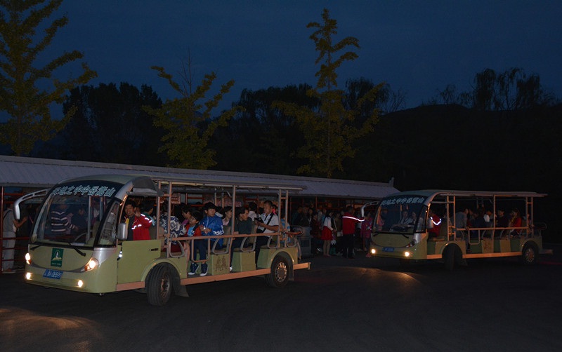 公司营运、停车场、环卫、安保等部门处室抽调人员,从下午6:30至晚间11:00、12:00分时段为游客提供延时服务,确保晚间返程游客不滞留景区。