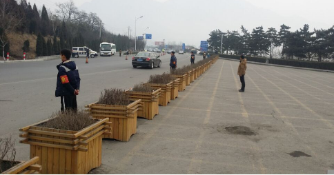 在207国道景区入口处、加油站口等重点区域设置警戒线、摆放反光锥,并安排武校学生增加稽查力量,“一”字型排开,有效杜绝车辆乱停乱放、黑车营运等违规现象