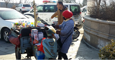 工作人员在少林景区207国道清理流动商贩