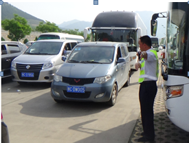 车辆交通:假日期间,早上7点钟在交通部门的配合下开始在207国道、景区内道路摆放反光锥,引导车辆分道行驶,并及时启动交通安全应急预案,对进出车辆实行分流管制,景区消防通道口、各临时停车场增派人员实行岗位责任制,疏导车辆进入景区并有序停放,防止交通拥堵,确保道路顺畅。